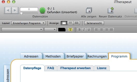 - In der Eingabemaske von iTherapeut unter Einstellungen - Programm - Lizenz können Sie nun wieder Ihre Einträge eintragen.