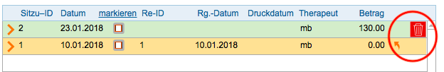 Um Rechnungen oder Sitzungen zu löschen, egal ob diese bereits verrechnet/bezahlt sind oder nicht, gehen Sie wie folgt vor.